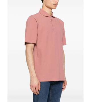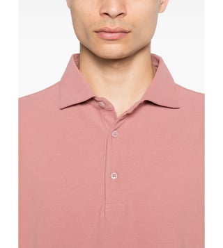 Elevate your style with the Lardini Light Pink polo t-shirt. Coral pink cotton crepe texture polo collar front button placket short sleeves short side slits straight hem. Products purchased from Darveys are supported exclusively by the warranty/exchange policies of Darveys and its partner boutiques. Brand owners and their channel partners are not responsible for exchange/warranty services for items purchased through Darveys.