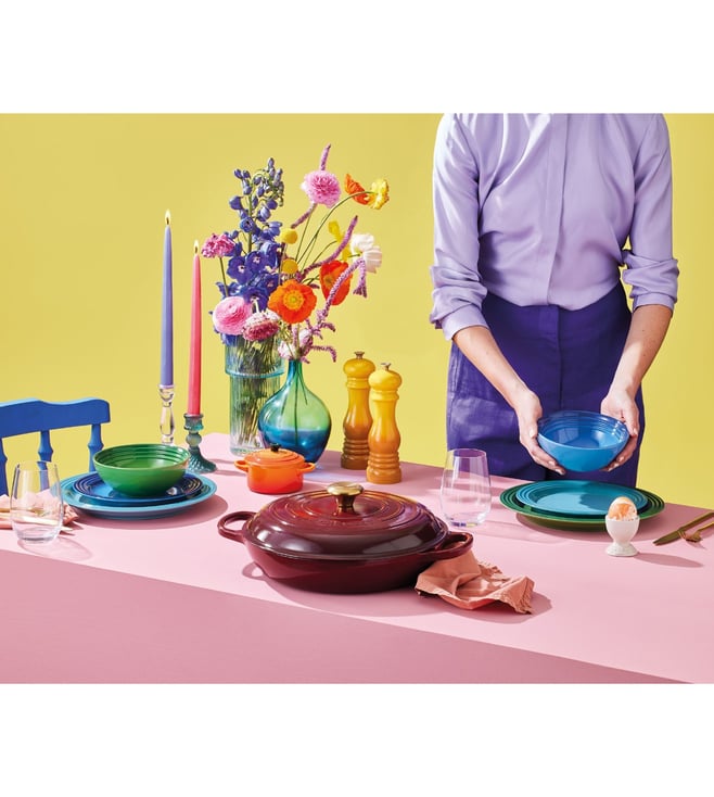 Brighten up your table with this classic stoneware dinner plate. It features a recessed base to keep liquids contained. That means fewer spills and more freedom to serve up all sorts of delicious dishes. The rim features Le Creuset¿s distinctive three-ring design ¿ a nod to those in the know.