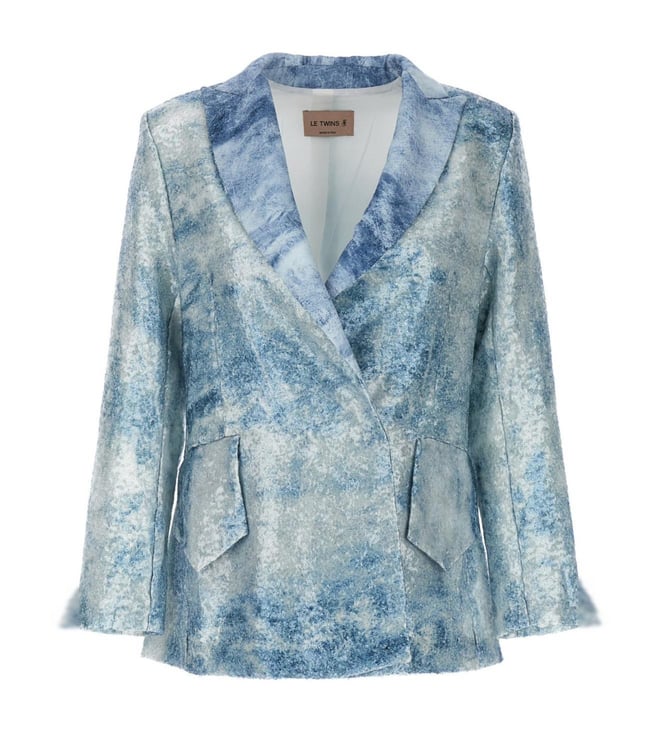 Light Blue Single-Breasted Embellished Blazer