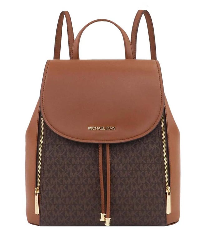 Dark Brown Phoebe Logo Leather Medium Backpack