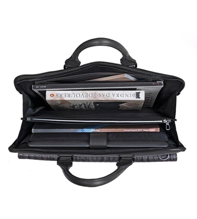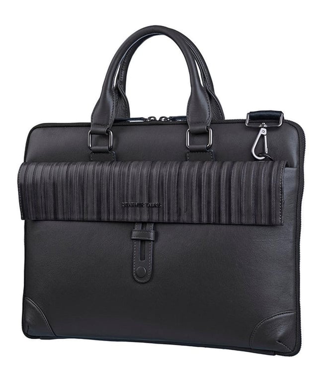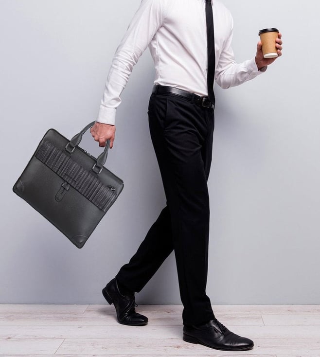 This laptop bag from Leather Talks is crafted from genuine leather in grey. Styled with an Italian loop stripe finish, this bag will add a layer of sophistication to any look. Perfect for the workweek or weekend escapades! Disclaimer: All other items in the image are only for display purposes and will not be a part of the delivery content. Product colour may slightly vary due to photographic lighting sources. Country of Origin - India.