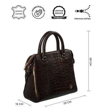 Perfect for everyday use, this genuine leather satchel handbag in brown from Leather Talks is a must-have for any casual occasion. With its spacious interior and sturdy design, this bag is both practical and stylish. Brand: Leather Talks. Colour: Brown.' Disclaimer: All other items in the image are only for display purposes and will not be a part of the delivery content. Product colour may slightly vary due to photographic lighting sources. Country of Origin - India.