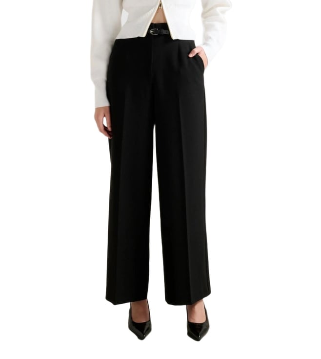 G12 Navy Blue Pleated Mid Rise Extra Wide Leg Fit Denim