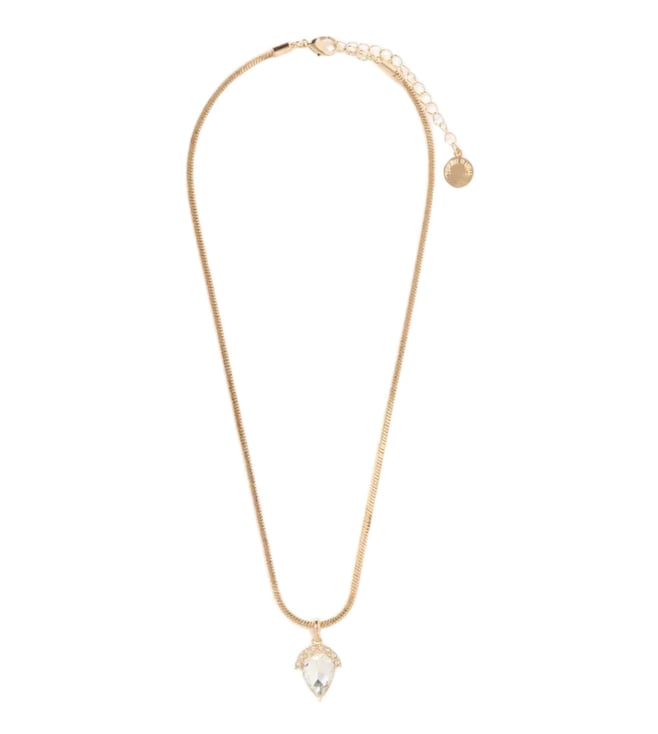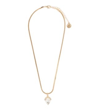 Elevate your style with the leila dainty stone necklace from Forever New. This classic piece features a teardrop crystal pendant in a stunning gold tone setting, perfect for adding a touch of subtle sparkle to any outfit. The fine adjustable chain and clasp fastening ensure a comfortable fit for everyday wear or special occasions. Make a statement with this versatile and elegant necklace that effortlessly complements any look. Stand out with timeless elegance and sophistication with the leila dainty stone necklace.