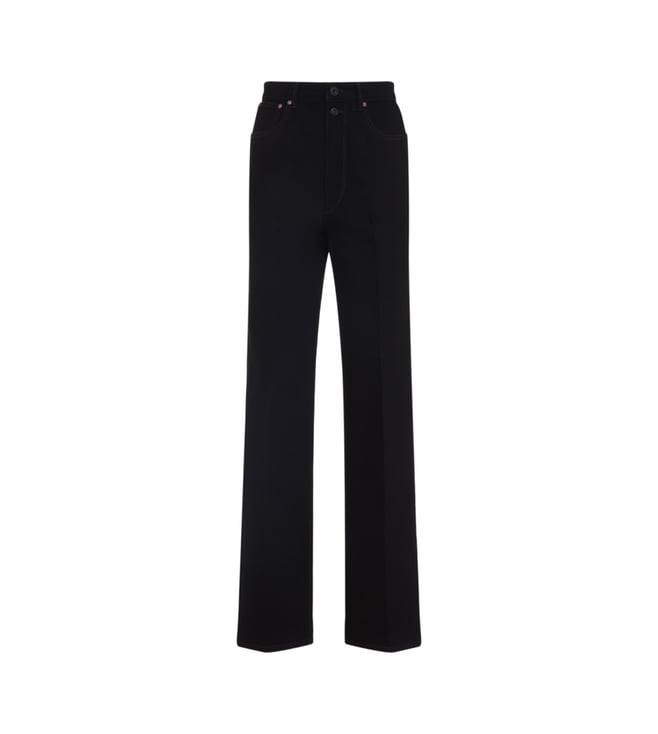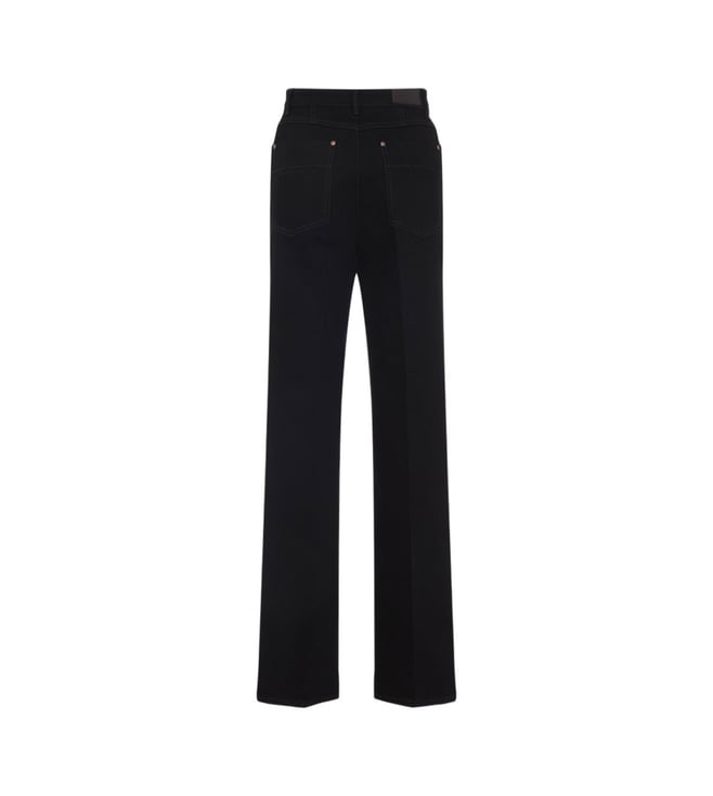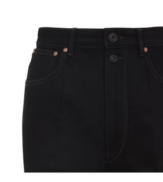 Elevate your wardrobe with the Lemaire Black Straight Fit Trousers. Designed with navy blue, cotton, twill weave, dart detailing, mid-rise, straight leg, slip pockets to the sides, rear patch pocket, unlined, belt loops, concealed front button, hook and zip fastening, detachable lace-up fastening at the waist, lace-up fastening to the ankles, outer: cotton 100%, this piece fits true to size. we recommend you get your regular size, model is 1, 75m / 5ft 8in wearing size 36 (fr), these trousers combine comfort and sophistication for everyday wear.