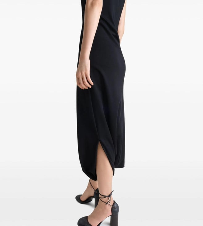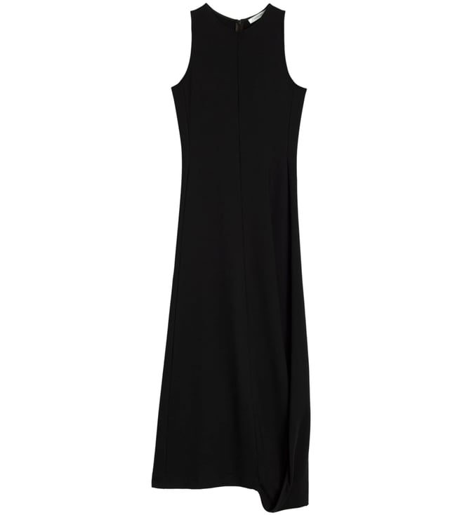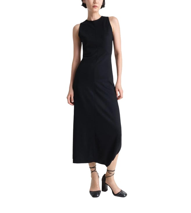 Embrace timeless elegance with this exquisite black dress, crafted from 100% pure silk. Its solid pattern exudes sophistication, while the sleeveless design and round neck offer a modern, chic silhouette. The luxurious fabric drapes gracefully, enhancing every movement with a subtle sheen. Perfect for any occasion, this dress combines classic allure with contemporary style, ensuring you make a striking impression. The seamless closure ensures a flawless fit, embodying effortless grace and poise.