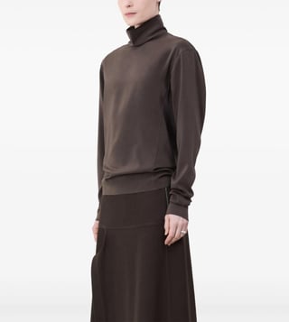 The Lemaire Brown High Neck Top is a sophisticated blend of elegance and comfort, crafted for the modern woman. Its rich brown hue exudes warmth, while the regular fit ensures a flattering silhouette. The subtle pattern adds a touch of intrigue, making it a versatile piece for any wardrobe. Made from a luxurious blend of 92% silk and 8% elastane, it offers a gentle stretch for ease of movement. The high neck design adds a chic touch, perfect for both professional and casual settings.