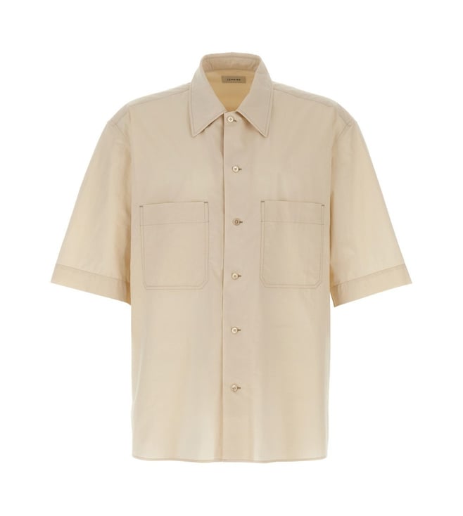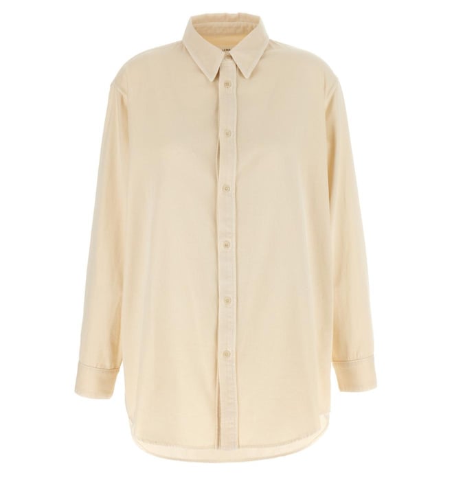 Cream Relaxed Fit Solid Long Sleeves Shirt