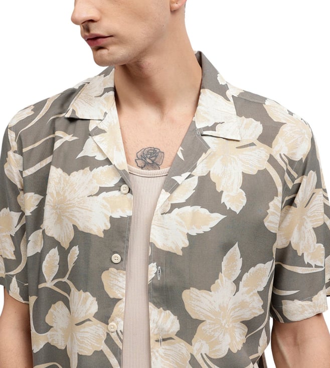 Lindbergh Green Fashion Floral Print Regular Fit Shirt