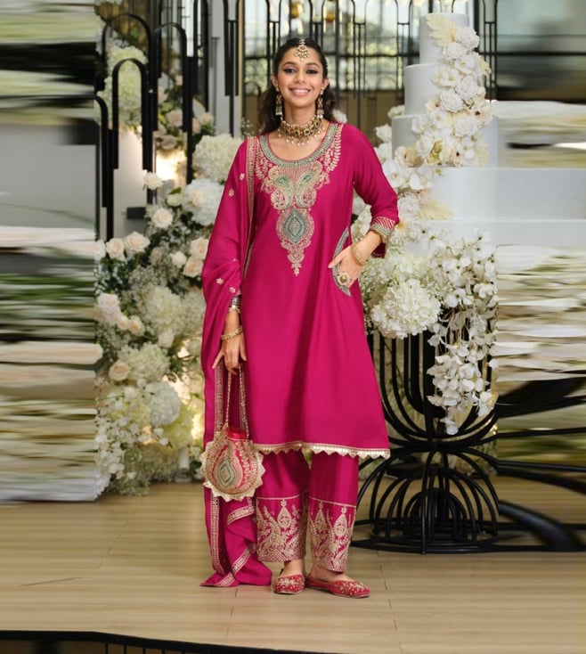 Pink Areesa Rouge Embroidered Regular Fit Full Work Heavy Suit Set