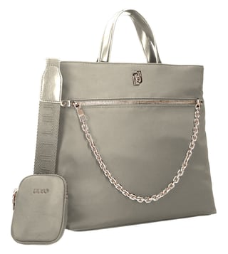 Flaunting a mushroom hue, this women Tote from LIU JO is for the fashionistas who love to get noticed for all the right reasons. The zip closure will keep your valuables secure. On the other hand, the chain strap ensures carrying comfort. Shaped from fine quality 100 polyester, it is quality assured.