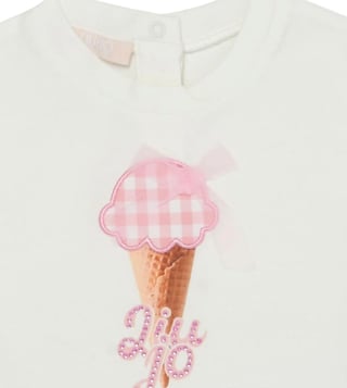 Introducing the Liu Jo White Ice Cream Printed Comfort Fit T-Shirt, a delightful addition to your baby girls wardrobe. This adorable t-shirt features a playful ice cream patch that adds a touch of sweetness to any outfit. The comfort fit ensures all-day wearability, while the high-quality materials guarantee durability. Let your little one stand out in style with this charming and versatile piece that is perfect for playdates, outings, or simply lounging at home. Upgrade her wardrobe with this cute and comfy t-shirt that is sure to become a favorite.
