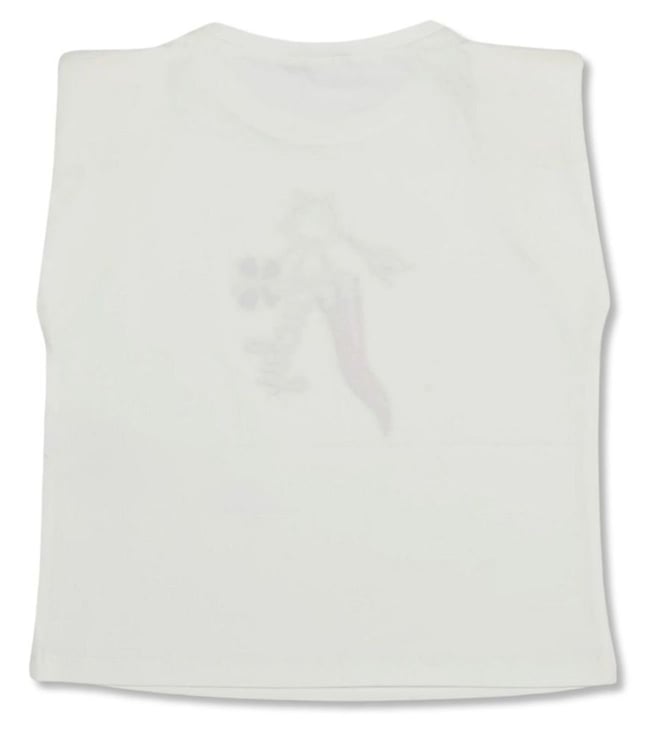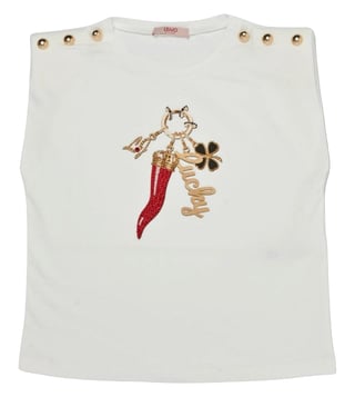 Elevate your little girls wardrobe with the Liu Jo White Printed Comfort Fit T-Shirt adorned with sparkling rhinestones. This sleeveless top exudes charm and style, perfect for any occasion. The breathable fabric ensures all-day comfort, while the relaxed fit allows for easy movement. Let her shine bright with this trendy and versatile piece that will make her stand out in a crowd. Upgrade her everyday look with this effortlessly chic and glamorous t-shirt.