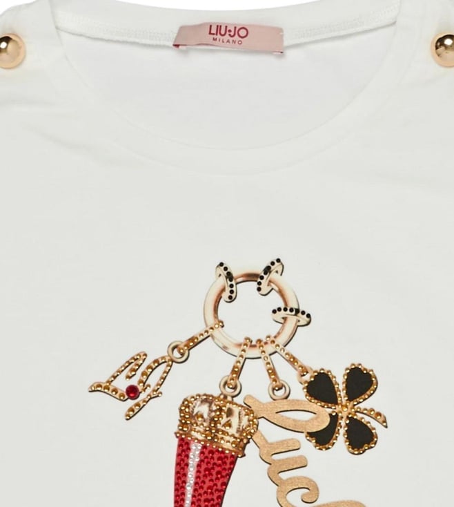 LIU JO White Printed Comfort Fit T-Shirt Rhinestones