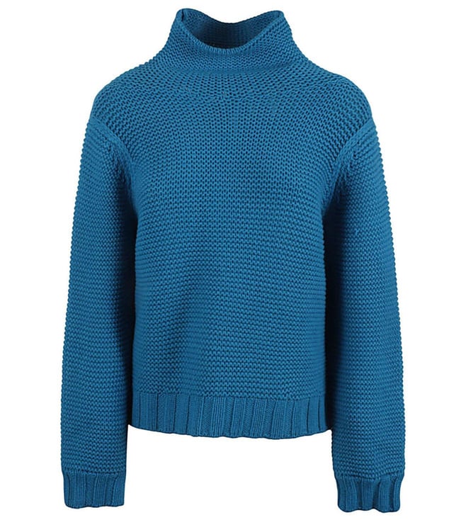 Blue Wool High Neck Jumper Sweatshirt