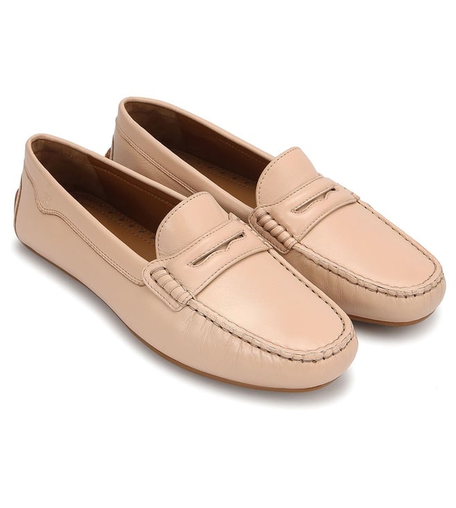 Beige Genuine Leather Women Loafers