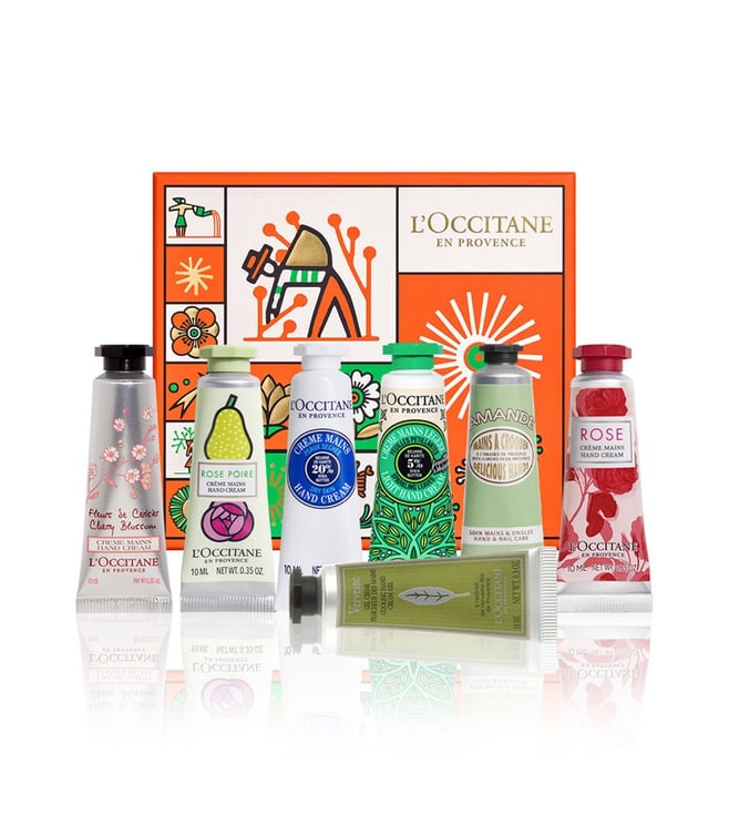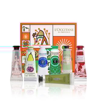 Indulge in the L'Occitane En Provence Hand Cream Delight Collection Set. This exquisite set includes seven luxurious hand creams. Each cream is formulated to nourish and pamper your hands with rich, delightful fragrances. Perfect for gifting or personal indulgence. This set contains L'Occitane En Provence Rose Poire Hand Cream - 10 ml, Verveine Hand Cream - 10 ml, Cherry Blossom Hand Cream - 10 ml, Shea Butter Hand Cream - 10 ml, Shea Sparkling Leaves Light Hand Cream - 10 ml, Almond Delicious Hand Cream - 10 ml & Rose Hand Cream - 10 ml.