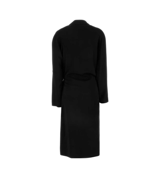 Embrace timeless elegance with this stunning black dress, crafted from a luxurious blend of cotton, viscose, and elastane. Its solid pattern exudes sophistication, while the long sleeves and classic shirt collar add a touch of refined charm. Designed for the modern woman, this dress offers a perfect balance of comfort and style. The sleek silhouette flatters every figure, making it an ideal choice for any occasion. Elevate your wardrobe with this versatile piece that promises to captivate and inspire.