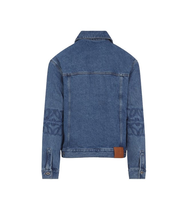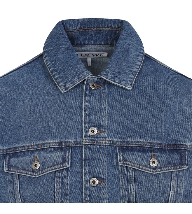 Elevate your style with the Loewe Blue Denim Jacket. Pointed collar front button fastening multiple pockets long sleeves buttoned cuffs back yoke adjustable straps on the waist. Products purchased from Darveys are supported exclusively by the warranty/exchange policies of Darveys and its partner boutiques. Brand owners and their channel partners are not responsible for exchange/warranty services for items purchased through Darveys.