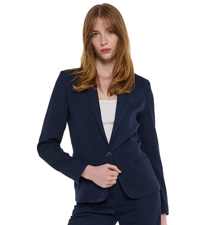 Women's Blue Viscose Solid Regular Fit Notched Lapel Full Sleeve Blazer