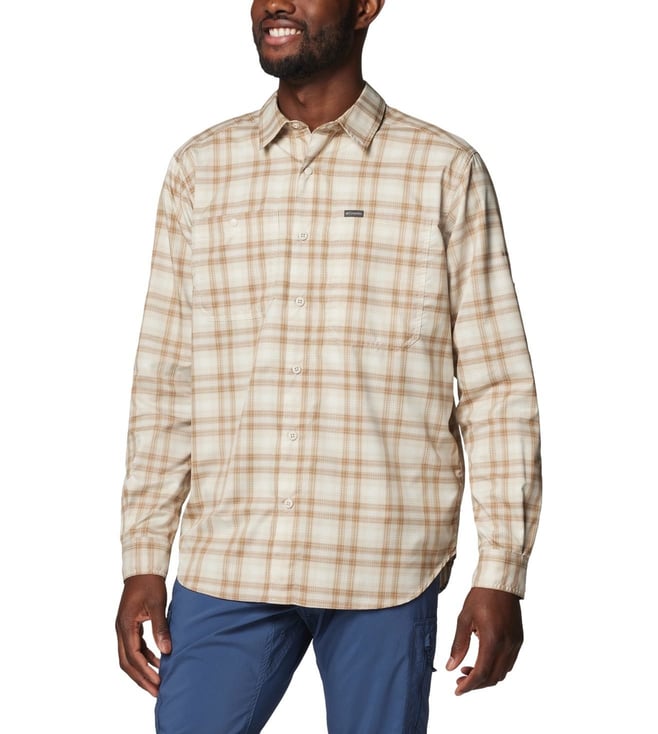Mens Beige Omni-Shade Silver Ridge Utility Lite Plaid Long Sleeve Shirt