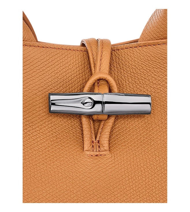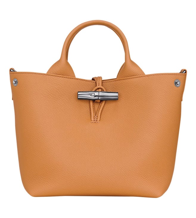 Brown Le Roseau Small Handbag, loop closure, inside zip and slip pockets, textured, dual carry handles with Removable and adjustable shoulder strap. With its timeless design and practical features, this bag is a must-have accessory for the modern woman on-the-go.