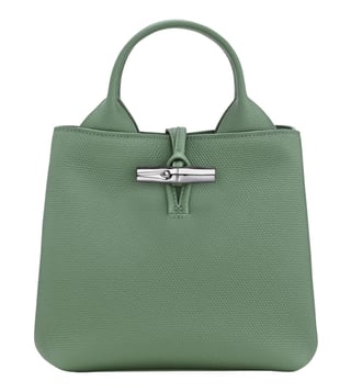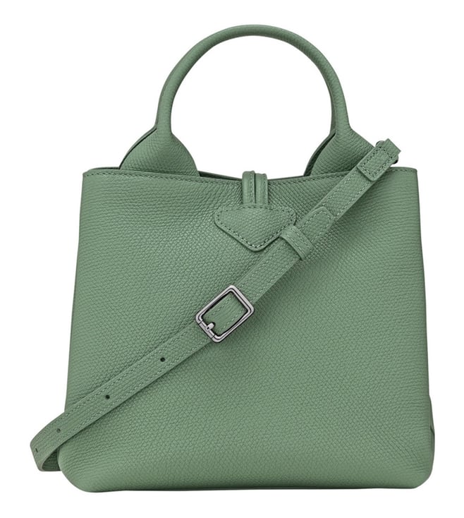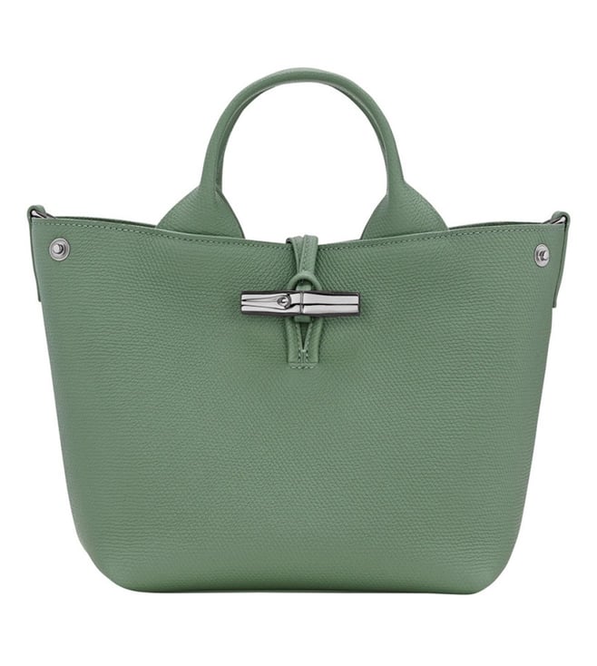 Green Le Roseau Small Handbag, loop closure, inside zip and slip pockets, textured, dual carry handles with Removable and adjustable shoulder strap.100% Leather With its timeless design and practical features, this bag is a must-have accessory for the modern woman on-the-go.