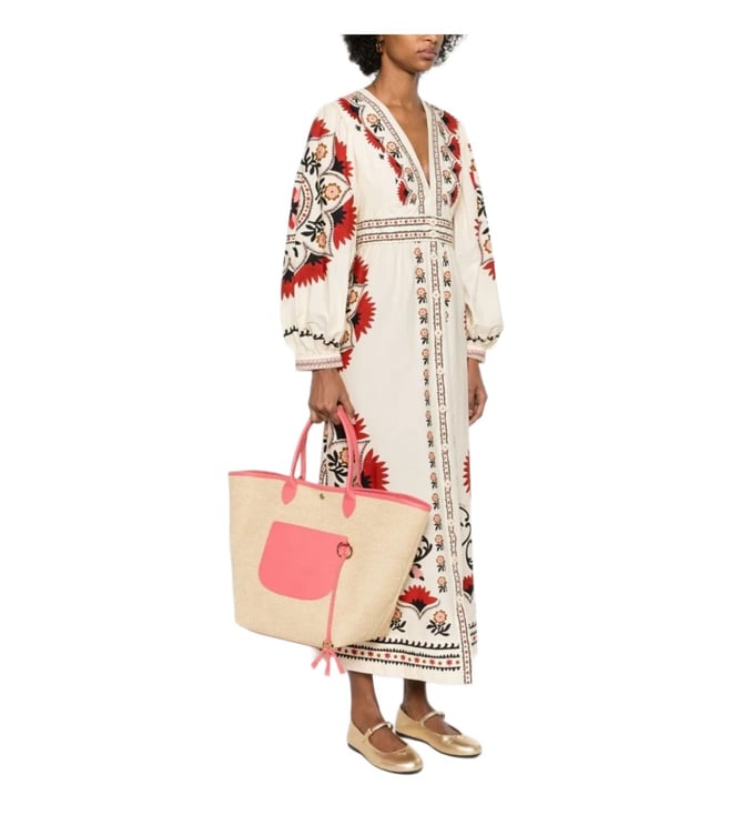 Pink Le Panier Large Tote, button closure, 1 compartment, inside zip pocket, front pocket, textured, dual carry handles. Products purchased from Darveys are supported exclusively by the warranty/exchange policies of Darveys and its partner boutiques. Brand owners and their channel partners are not responsible for exchange/warranty services for items purchased through Darveys.