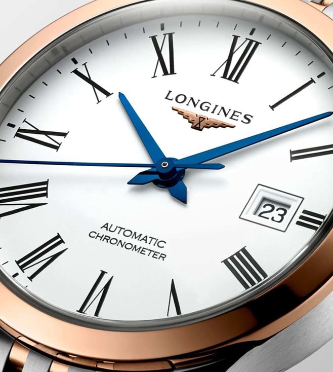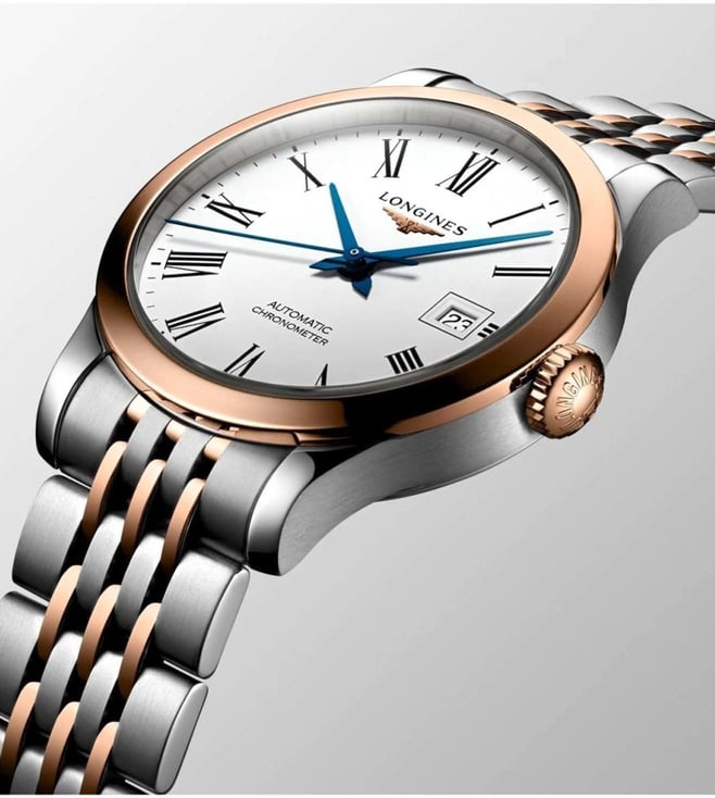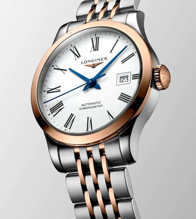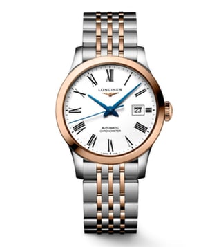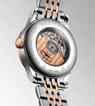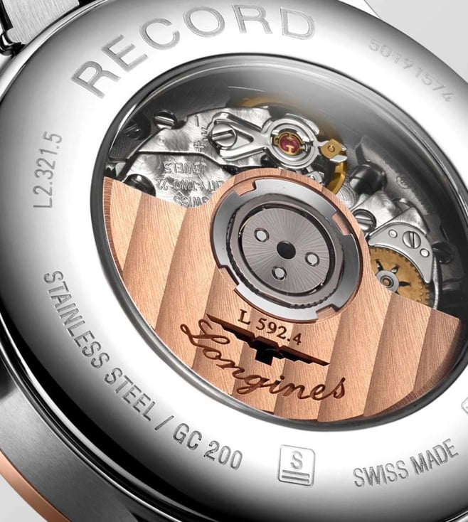 Strengthen your look with this watch from the Record collection by LONGINES. Housed in a 37.7 mm case, the dial is shielded with sapphire crystal. The timepiece runs on a automatic movement. Besides, it is water resistant up to 30 m and is finished with a triple-folding clasp to guarantee a snug fit on the wrist.