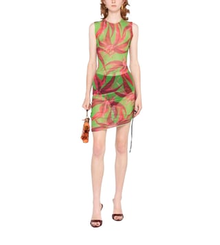 Immerse yourself in the vibrant allure of this sleeveless dress, a masterpiece in lush green adorned with an eye-catching graphic pattern. The round neck design offers a classic touch, while the fabric¿a luxurious blend of 92% viscose and 8% elastane¿ensures a flattering, comfortable fit that moves with you. Designed for the modern woman, this dress features a seamless closure, making it an effortless choice for any occasion where style and comfort are paramount.