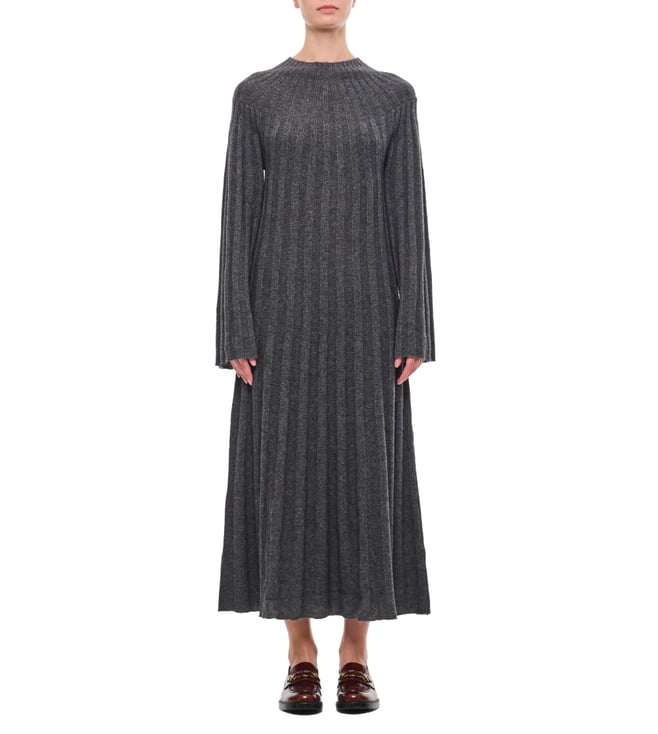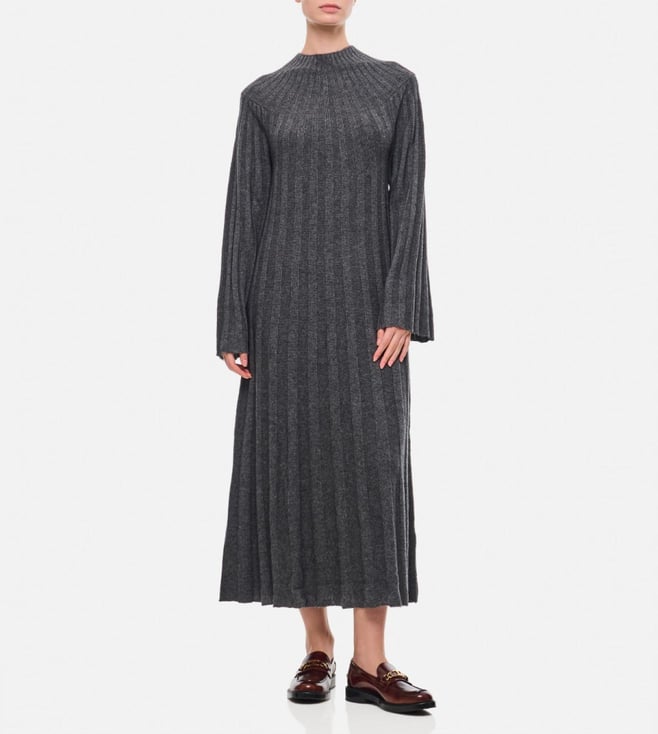 Embrace timeless elegance with this exquisite grey dress, crafted from 100% wool for unparalleled warmth and comfort. The solid pattern exudes sophistication, while the long sleeves and round neck offer a classic silhouette perfect for any occasion. Designed for the modern woman, this dress features a seamless closure that enhances its sleek, minimalist aesthetic. Whether for a day at the office or an evening out, this versatile piece promises to be a staple in your wardrobe, radiating understated charm and grace.