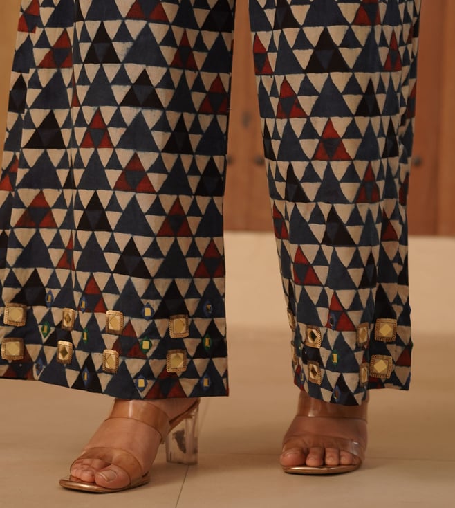 Love Chic Ajrakh Cotton Palazzo with hand embroidery