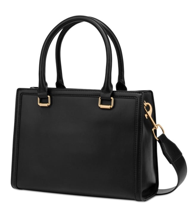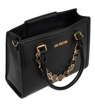 Black concealed magnetic fastening two rolled top handles detachable shoulder strap chain-link detailing