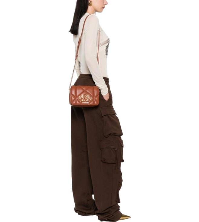 Love Moschino Brown Logo Plaque Cross Body Bag