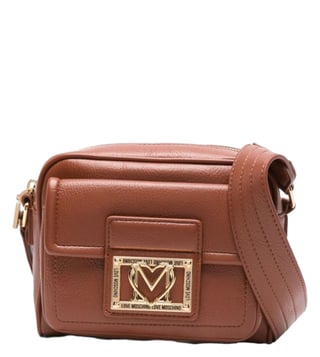 Love Moschino Brown Logo Plaque Cross Body Bag