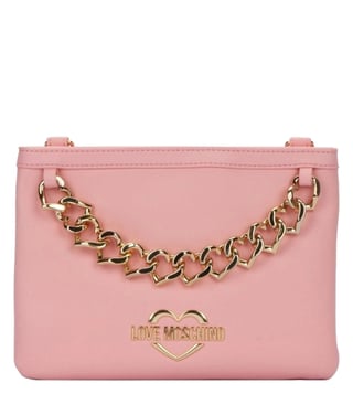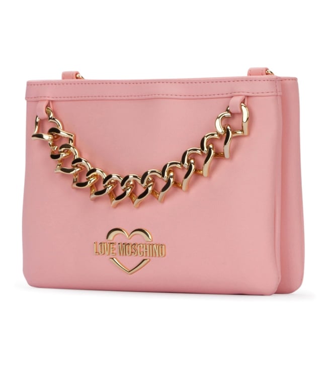 Expand the collection of your accessories in a trendy way with this bag from Love Moschino. Its versatile design complements any outfit, making it an essential for basic and casual activities. Light pinkbrand logo broochtop handle with chain ringpart divided by commas
