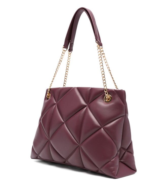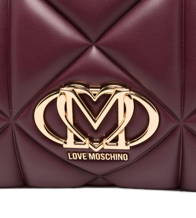 Expand the collection of your accessories in a trendy way with this bag from Love Moschino. Featuring maroon, zip closure, 1 compartment, inside zip pocket, metal logo, dual carry handles.