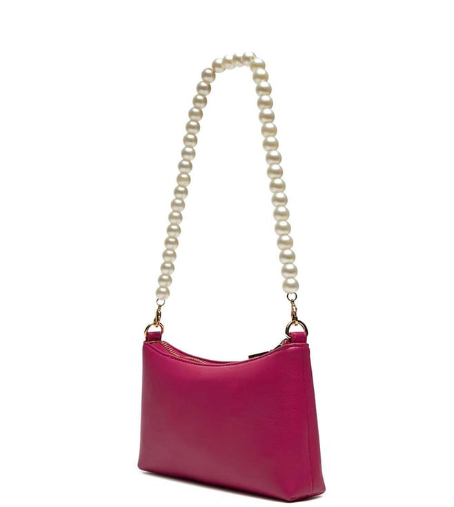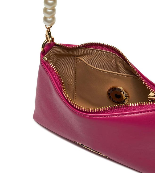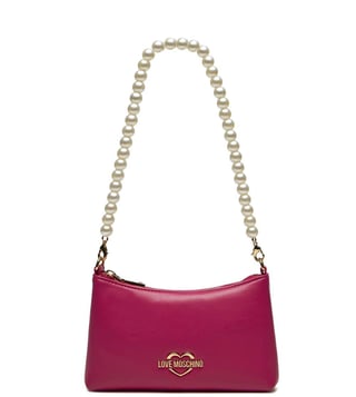 Love moschino fuchsia heart logo mini shoulder bag crafted in polyurethane featuring zip closure, 1 compartment, metal logo, removable faux-pearls shoulder strap. Products purchased from Darveys are supported exclusively by the warranty/exchange policies of Darveys and its partner boutiques. Brand owners and their channel partners are not responsible for exchange/warranty services for items purchased through Darveys.