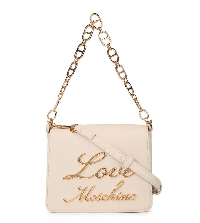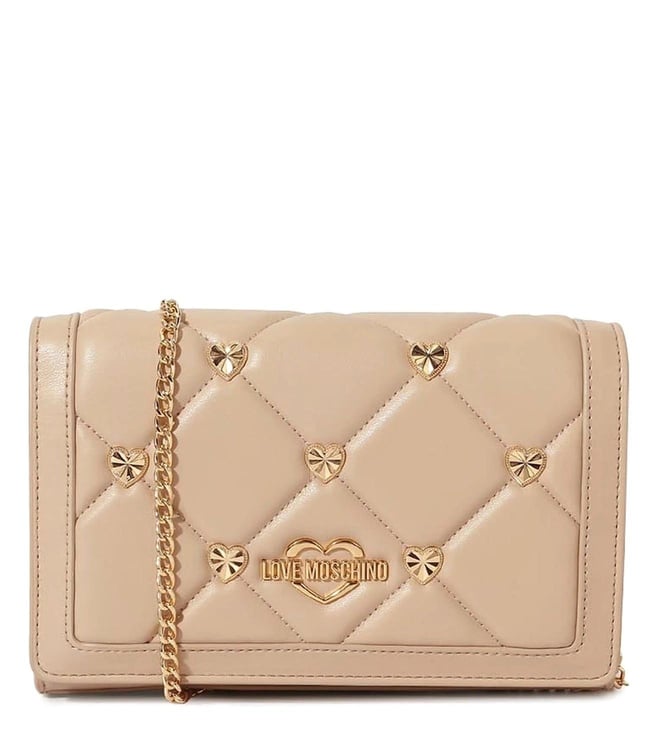Women Cream Quilted Heart Studs PU Cross Body Bag