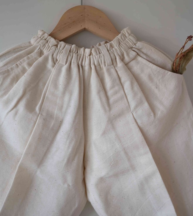 Love the World Today Candy Cloud Cotton Silk Pink Kurta And Cotton Off White Baggy Pants Set