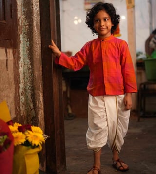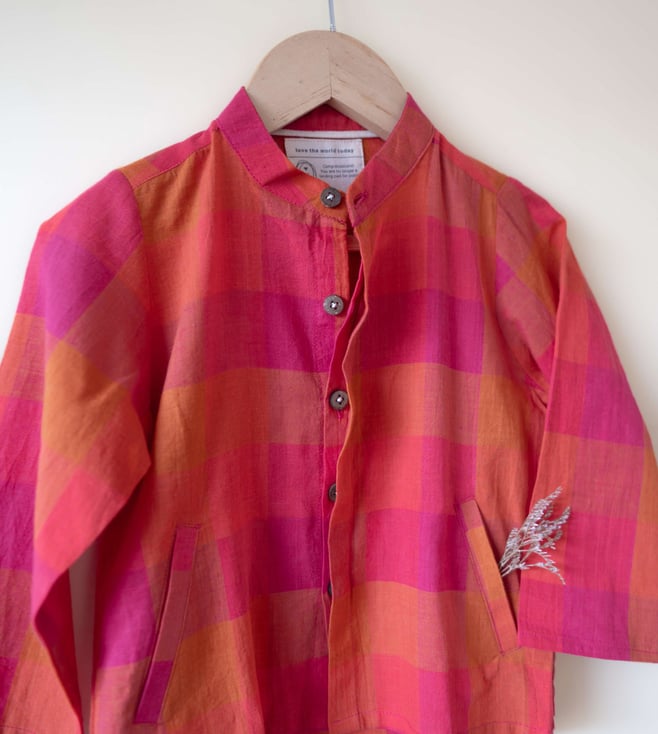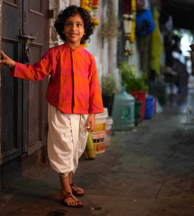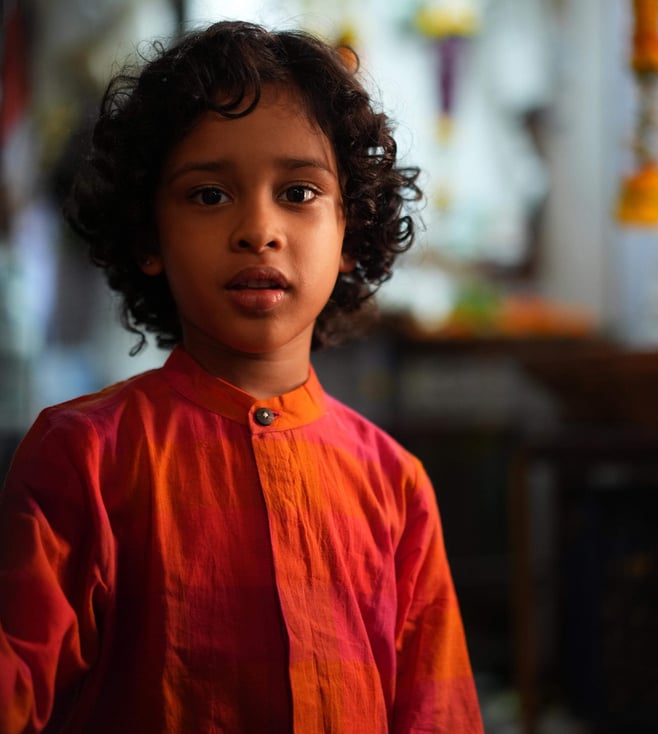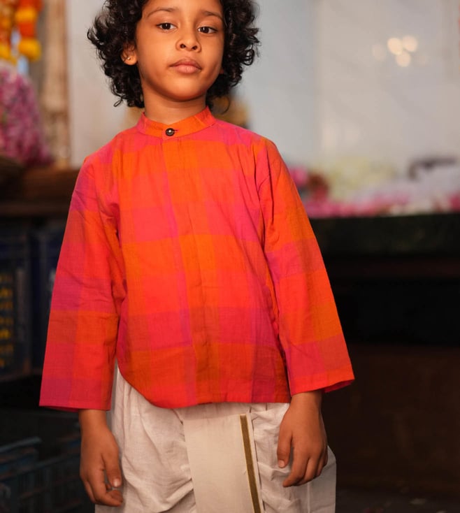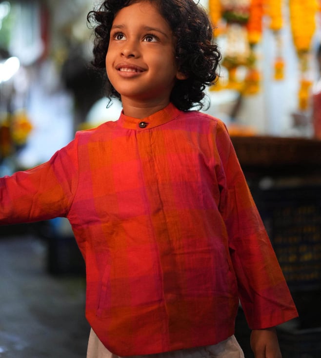 Is it a Shirt or a Kurta? Doesn¿t Matter¿It¿s the Most Stylish Choice This Festive Season.The perfect blend of tradition and modern style, an outfit that will stand out at any festive celebration.Whether you call it a shirt or a kurta, one thing¿s for sure¿this piece is a must-have for dressing your little one in style this season. Made with cotton handwoven in West Bengal, Pockets for little treasures ,Stylish chinese collar and Styling tip - Pair it with dhoti, pyjamas or pants! As long as you put them to use every chance you get.