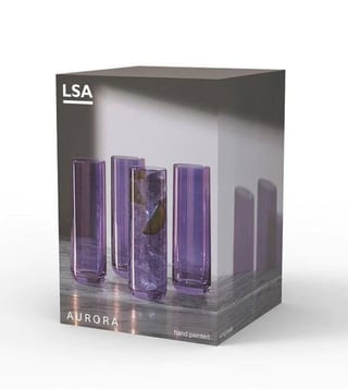 Add elegance to any occasion with these Aurora highball glasses from LSA. This set of four contemporary highballs are hand painted with a violet lustre inspired by the iridescent colours of the Northern Lights. Contemporary in design, these highball glasses are fabulous for dining and socializing. Suitable for gin and tonic, long cocktails, juice or water. Presented in a stylish gift box, these glasses are a great gift idea!