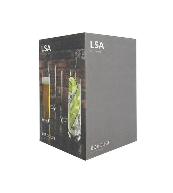 Add simple elegance to any occasion with these Borough highball glasses from LSA. These set of four tall highballs glasses have fine walls and gently curved bases. Featuring a versatile shape, these highball glasses are fabulous for long cocktails or soft drinks.Inspired by the relaxed atmosphere of local dining and socialising, the borough highball glasses are made crafted from lead-free crystalline glass and ideal for entertaining guests.
