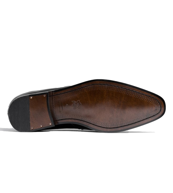 Take your dressier look up a notch with these loafers with rich tones, premium material, and artisanal techniques. Luxoro Formello enhances the traditional men's loafers with a hand-aged patina and precious penny strap. The signature alivio construction wraps the foot for unrivaled flexibility and comfort, complemented by a border-stitched hand-made sole.