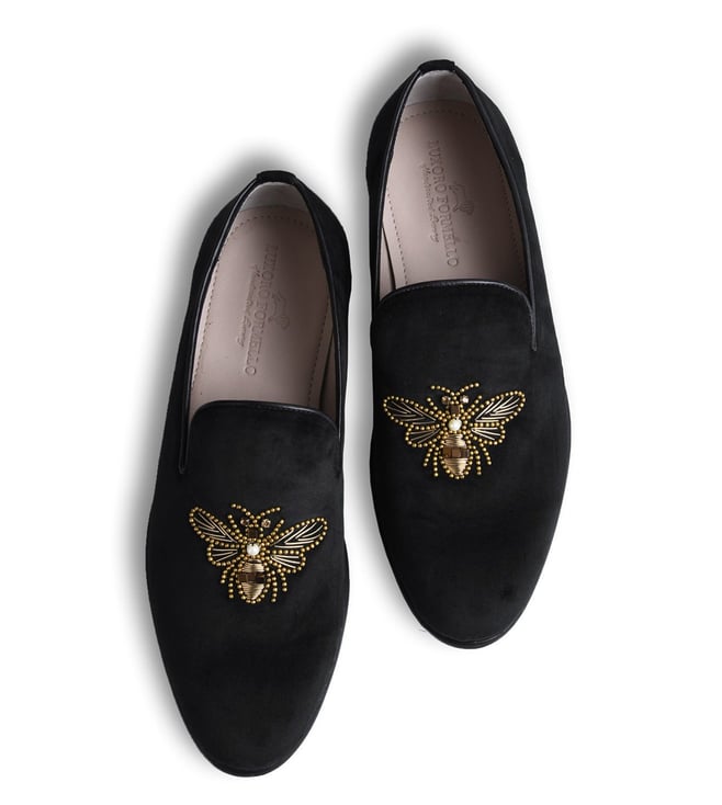 These Luxoro Formello¿men's¿embroidered slip-on loafers stand out for their craftsmanship. A meticulous selection of velvet and leathers are used. These velvet slip-on loafers follow the leather shoemaking roots and feature the brand's signature alivio construction, leather cushioned footbed, and hand-stitched border sole.