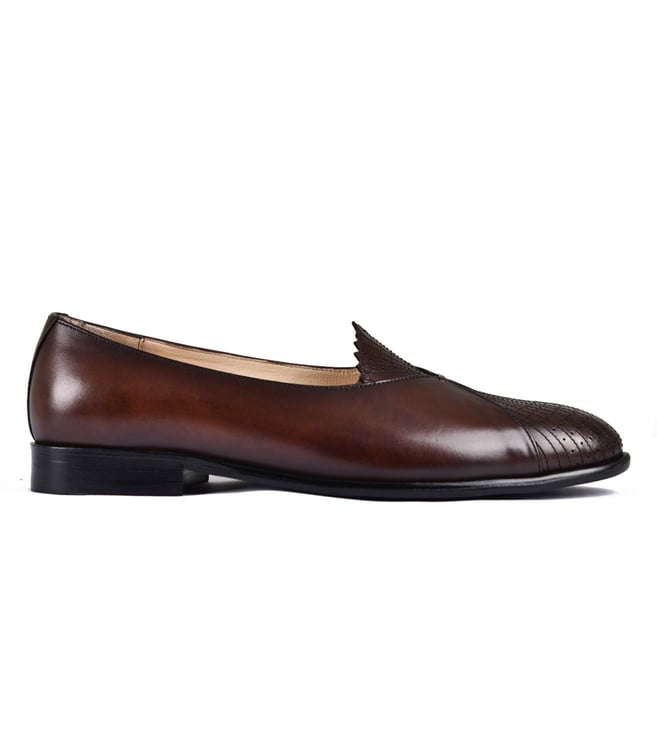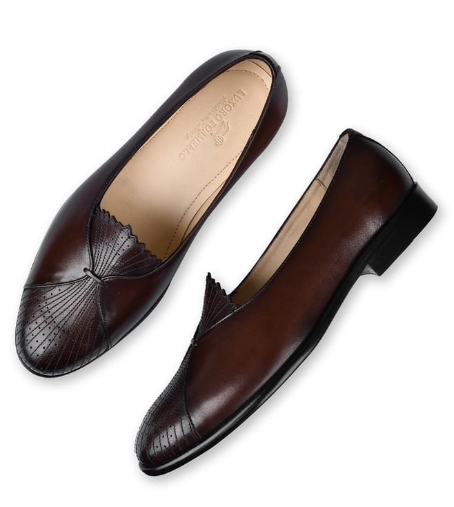 Peafowl-inspired stitching patterns and vamp silhouettes embrace these slip-on loafers for ethnic events. It has been crafted using time-honored leather-lined Alivio¿construction offering an all-leather cushioned footbed for¿unrivaled flexibility, and finished in the handmade border stitched sole.
