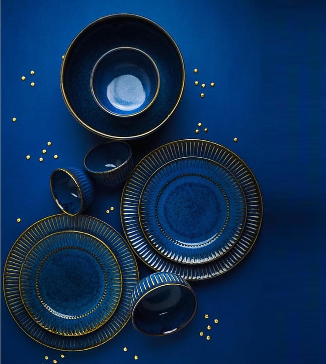 Brown & Blue Premium Ceramic Dinner - Set of 20