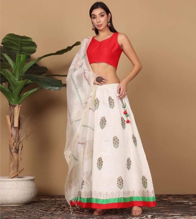 Kaanchie Nanggia Red Cotton Regular Fit Printed Lehenga Set