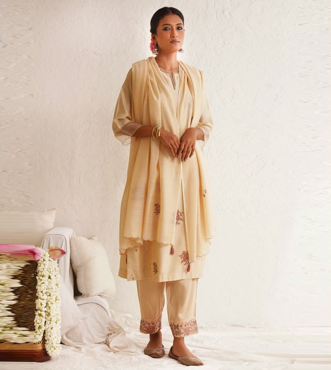Kaanchie Nanggia Yellow Cotton Regular Fit Lehenga Set