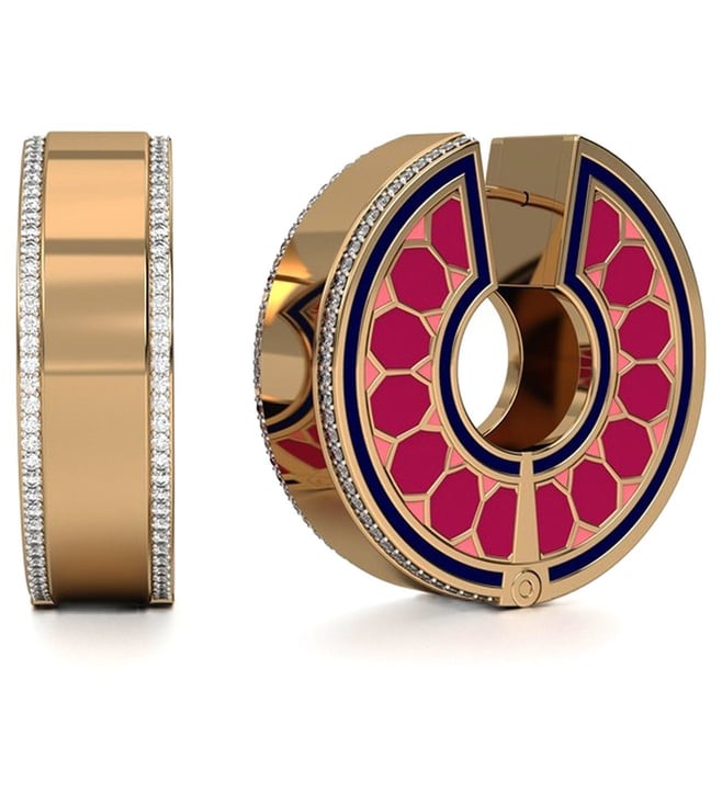 14k Gold Pink Enamel Summer Sorbet 2.0 Collection Strawberry Diamond Hoops Earrings